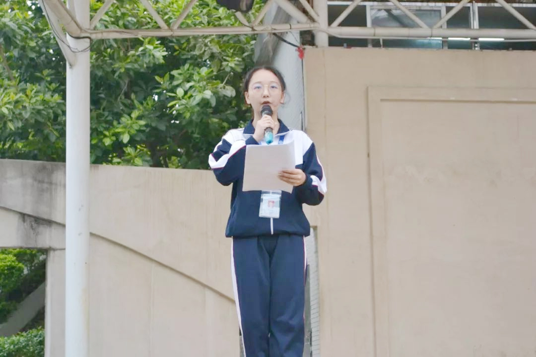接著是大會第二項,背誦系訓以及系部口號,上周說明因為口號中的“愛家愛校愛父母”中“愛家”和“愛父母”重復,所以改成了“愛家”改成了“愛國”。
