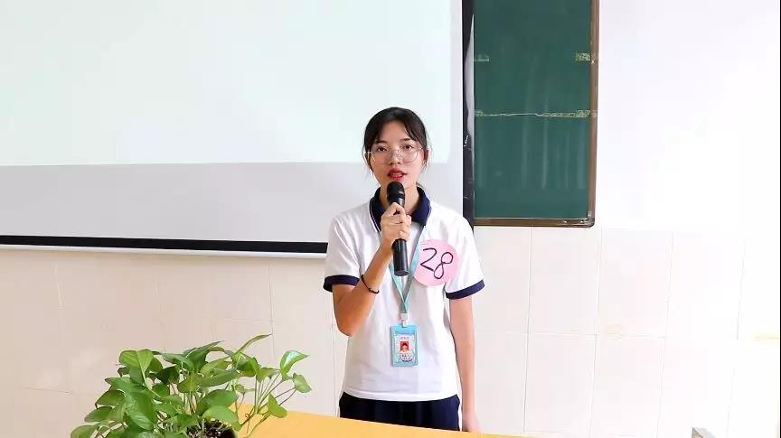 來自18美容2班的28號美女參賽選手魏嘉怡同學緊扣愛國演講主題,演講期間穿插“我和我的祖國”優美歌聲,將美容專業學子對祖國的熱愛融入現場演講的歌聲!